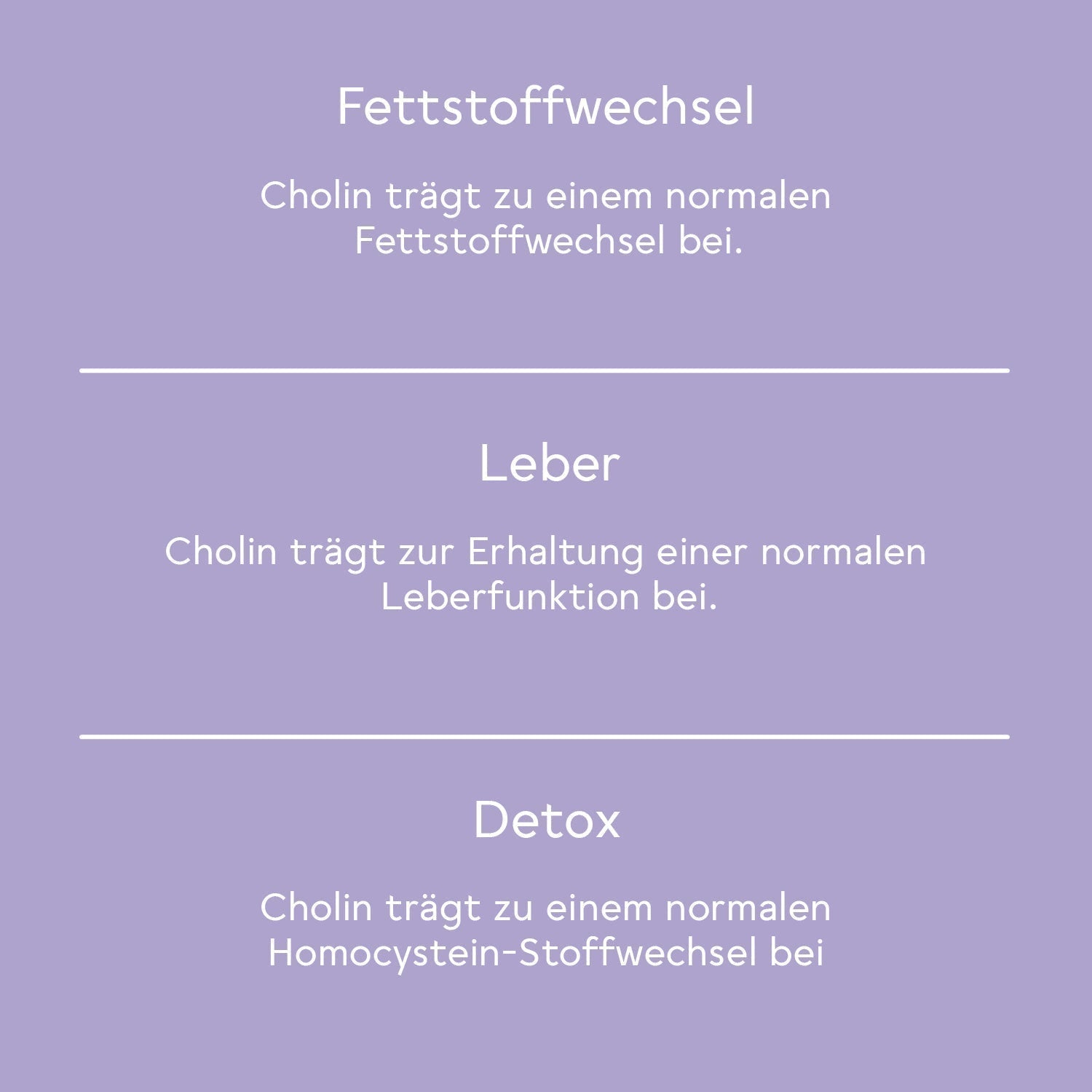 Das Cholin unterstützt die Fettverdauung und trägt zu einem normalen Fettstoffwechsel bei.