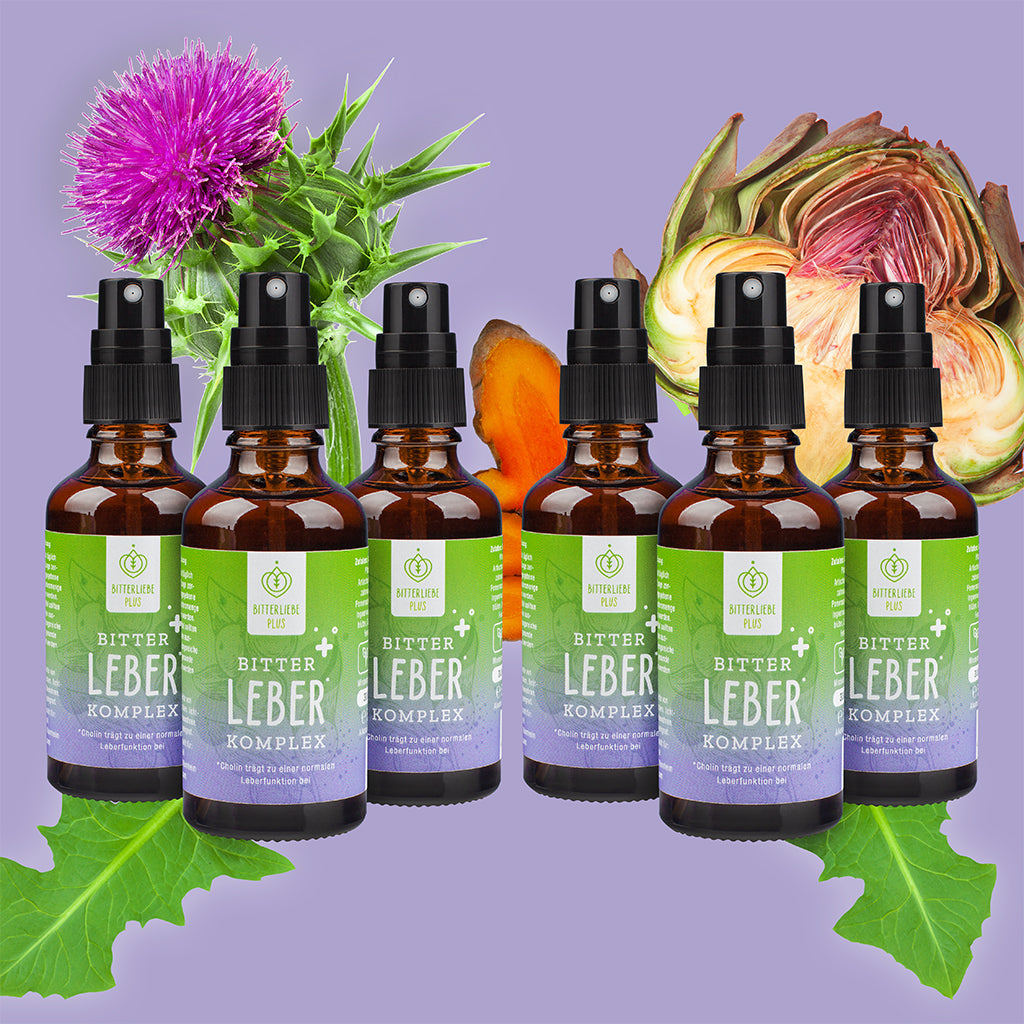 Unsere einzigartige Formel vereint sorgfältig ausgewählte Inhaltsstoffe, die gezielt die Lebergesundheit fördern. Das Leber Spray von BitterLiebe enthält eine einzigartige Formel aus Mariendistel, Löwenzahn, Artischocke und Cholin. Cholin trägt zu einer normalen Leberfunktion bei. Unser Komplex ist auch ideal, um eine beanspruchte Leber zu unterstützen, z.B. nach der Einnahme von Antibiotika.