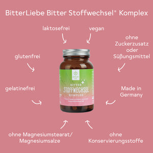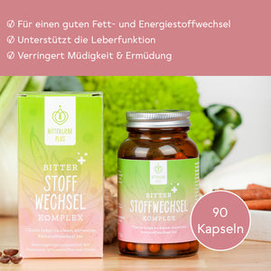 Der neue BitterLiebe Plus Bitter Stoffwechsel* Komplex ist die perfekte Ergänzung für den gesünderen Alltag und die beste Unterstützung bei einer Stoffwechsel-Kur.