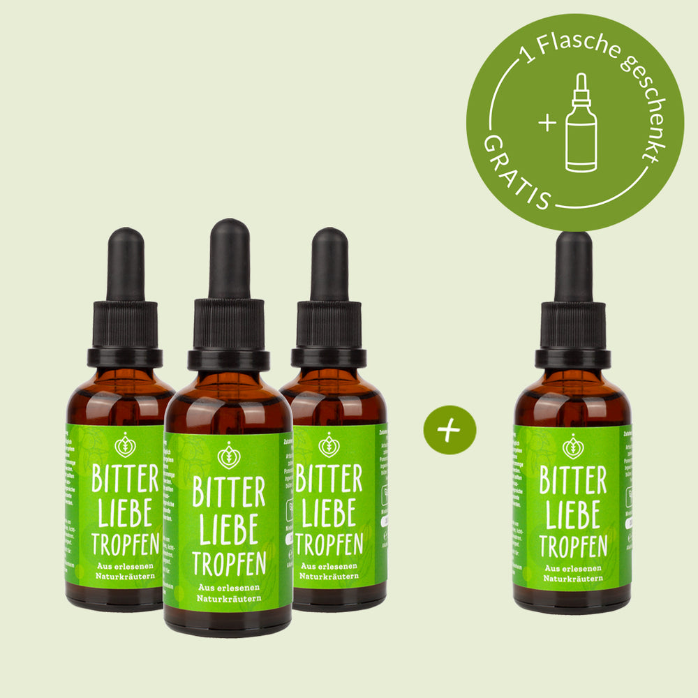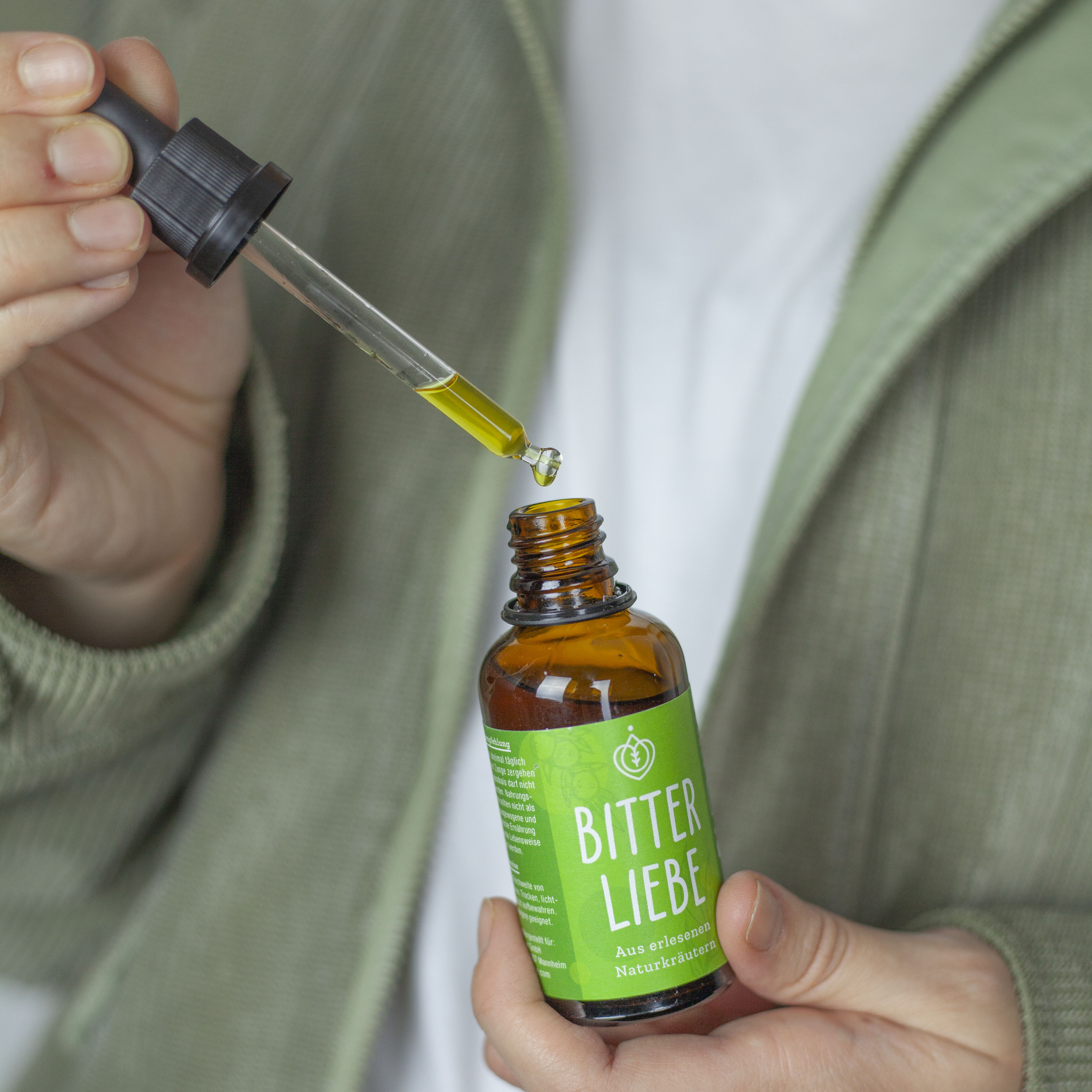 Die Tropfen enthalten nur die wertvollsten Bitterstoffe aus 15 erlesenen Naturkräutern. Alle BitterLiebe Produkte sind garantiert vegan.