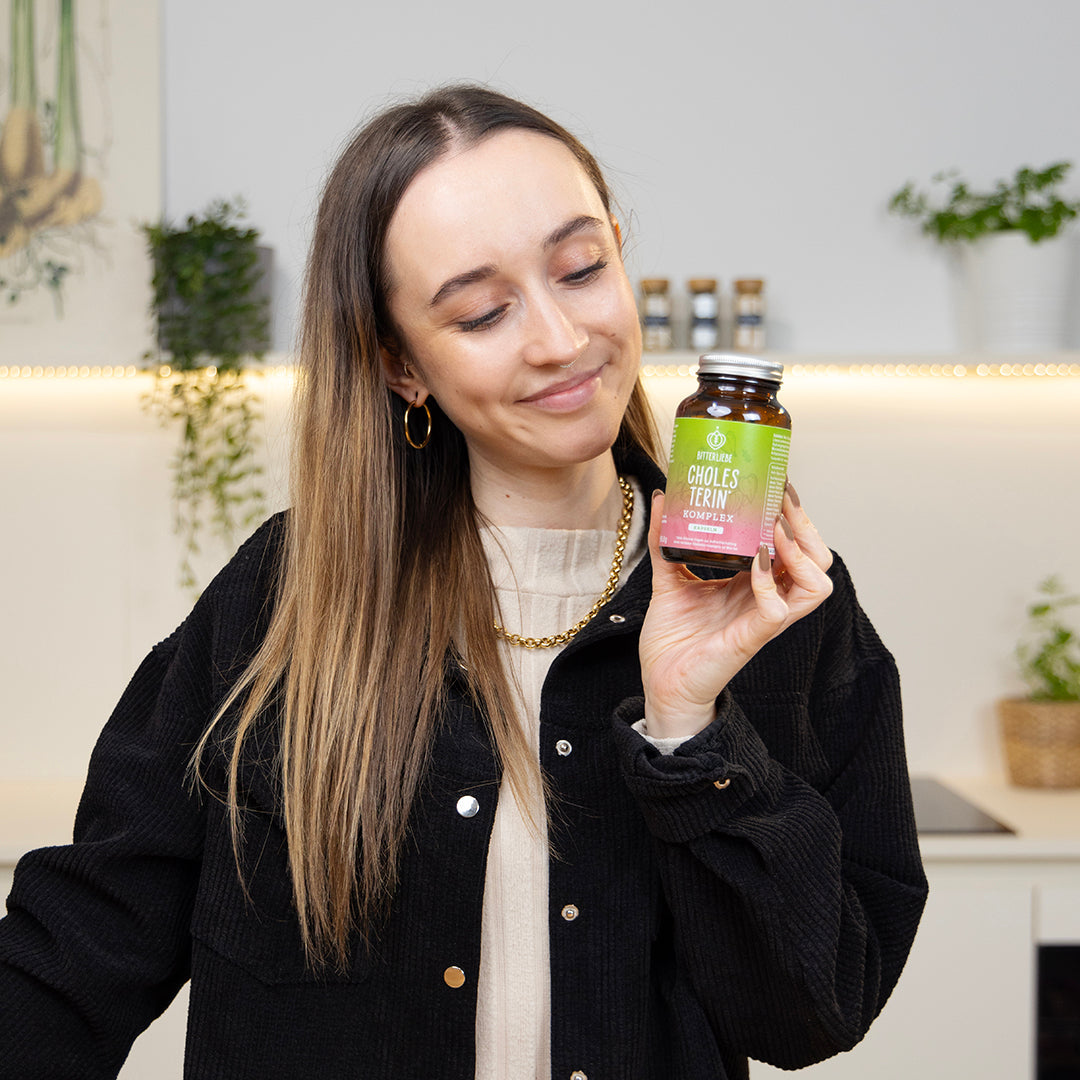 Der BitterLiebe Cholesterin* Komplex vereint die Kraft von Bitterstoffen, Beta-Glucanen und wertvollen Pflanzenextrakten wie Artischocke und Löwenzahnwurzel. Er hilft dabei, das schlechte LDL-Cholesterin zu senken und das gute HDL-Cholesterin zu fördern – auf natürliche Weise und ohne Nebenwirkungen. Beta-Glucane tragen zusätzlich zur Aufrechterhaltung eines normalen Cholesterinspiegels im Blut bei, während die Bitterstoffe den Fettstoffwechsel unterstützen.