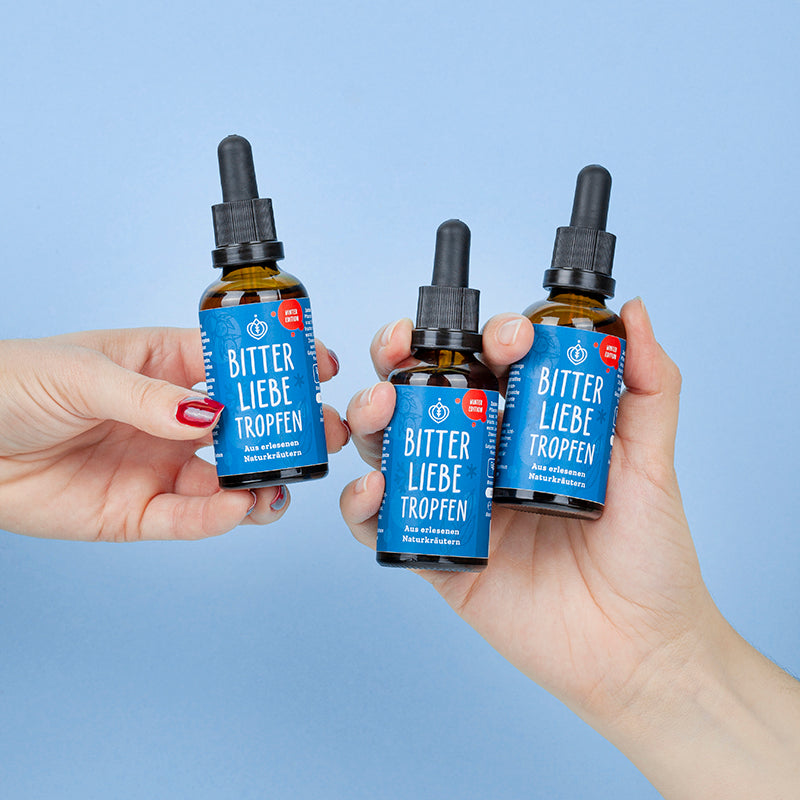 Du hattest ein Weihnachtsessen zu viel oder die Plätzchen lächeln Dich abends vor dem Fernseher an? Probiere es stattdessen doch mal mit BitterLiebe Tropfen. Perfekt nach dem Essen, statt Schnaps oder Espresso oder auch wenn sich Deine innere Naschkatze mal wieder meldet.