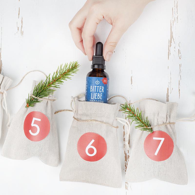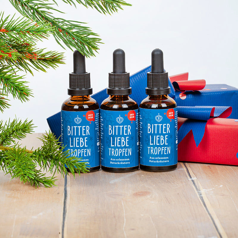 Genieße die Wirkung der BitterLiebe Tropfen mit einer weihnachtlichen Note.