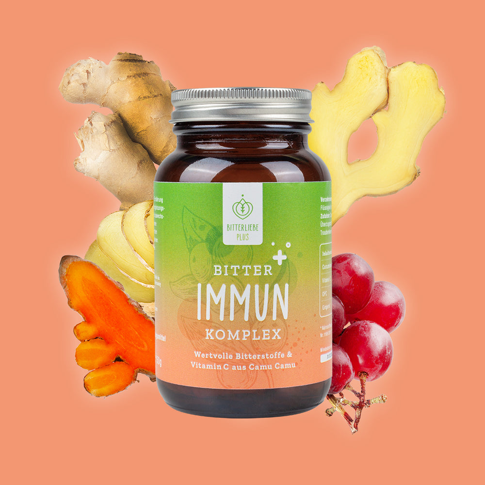 Unsere Bitter Immun Komplex besteht aus einer einzigartigen Kombination von hochdosierten natürlichen Wirkstoffen - vereint und konzentriert in Kapselform. Zusätzlich enthalten sie Vitamin C aus der Camu Camu Frucht. Denn Vitamin C trägt dazu bei, die Zellen vor oxidativem Stress zu schützen und trägt zu einer normalen Funktion des Immunsystems bei.