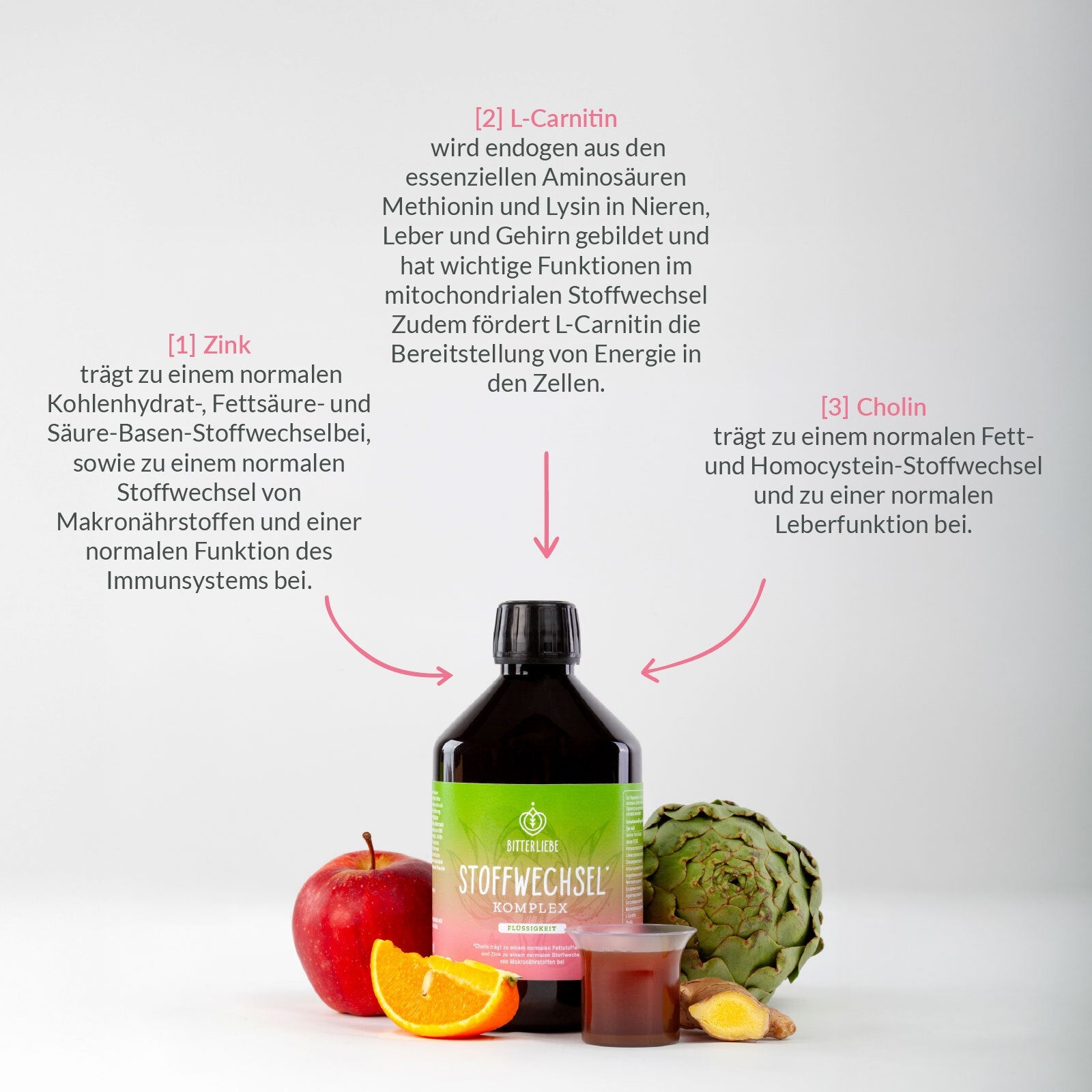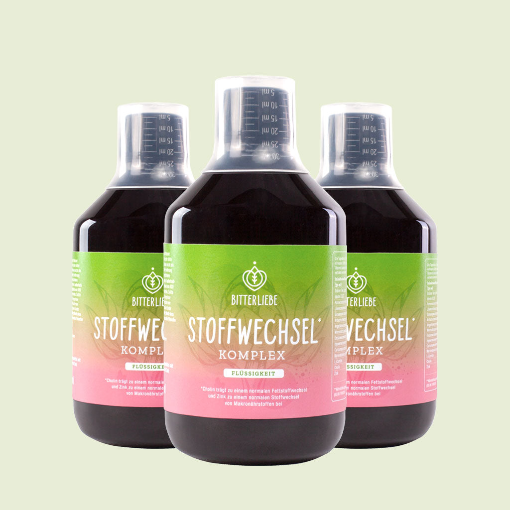 Gerne kannst Du den Stoffwechsel* Shot auch mit unseren anderen BitterLiebe Produkten kombinieren, z.B. mit den Tropfen und Bitterstoffe Kapseln. Die Verzehrsempfehlung bei den jeweiligen Produkten bleibt bestehen, auch wenn Du mehrere Bitterstoffe Produkte einnimmst.