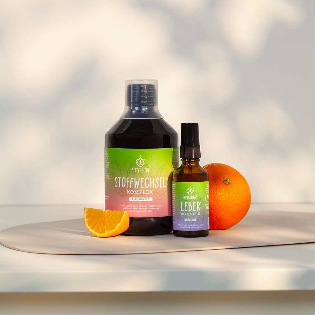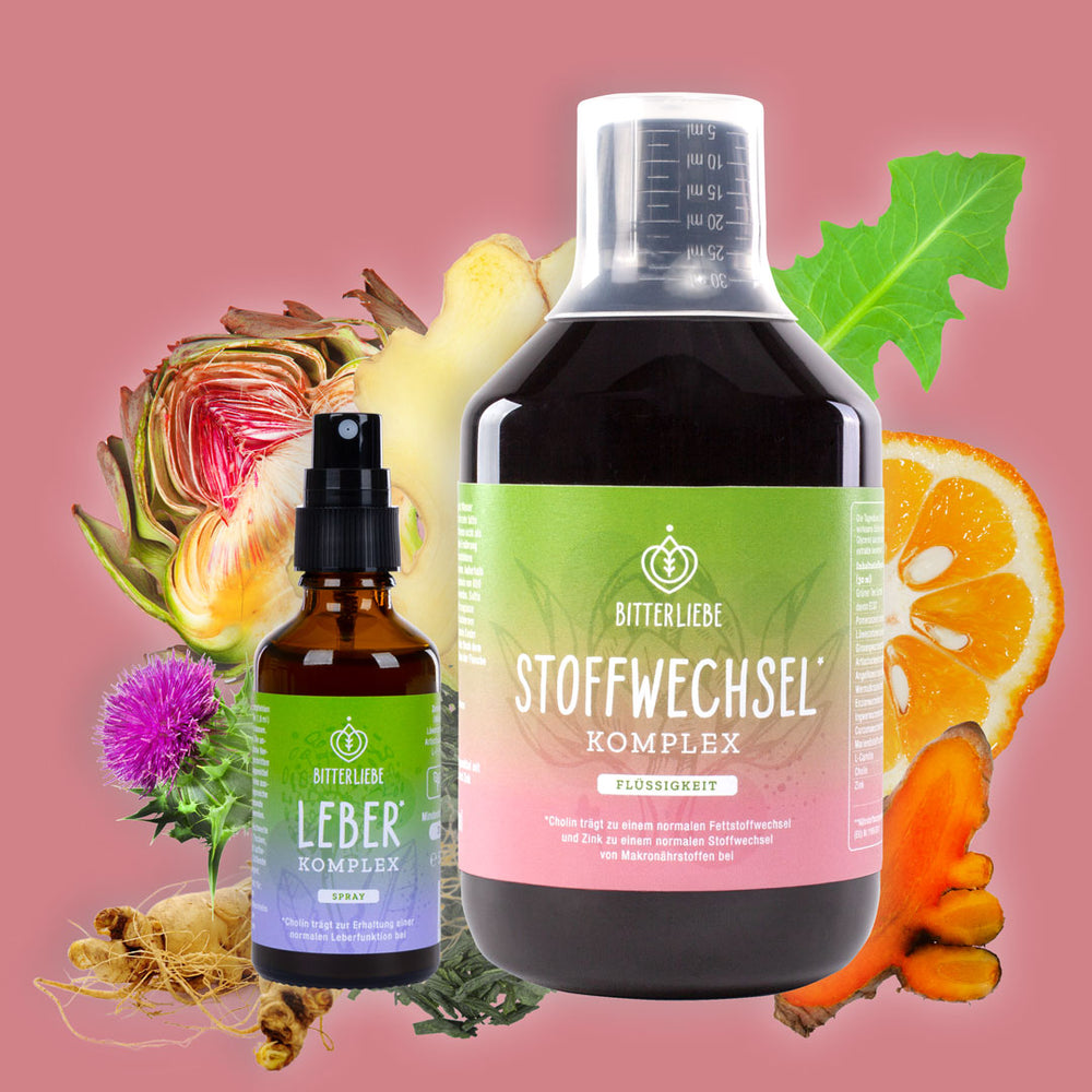 Gerne kannst Du den Stoffwechsel* Shot auch mit unseren anderen BitterLiebe Produkten kombinieren, z.B. mit den Tropfen und Bitterstoffe Kapseln. Die Verzehrsempfehlung bei den jeweiligen Produkten bleibt bestehen, auch wenn Du mehrere Bitterstoffe Produkte einnimmst.